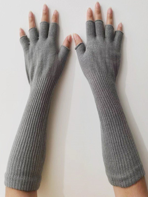 Ribbed Knit Thumbhole Arm Warmer Gloves