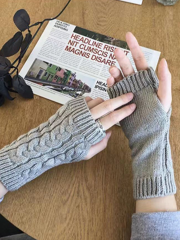 Fingerless Thick Warm Fleece Lining Knitted Gloves