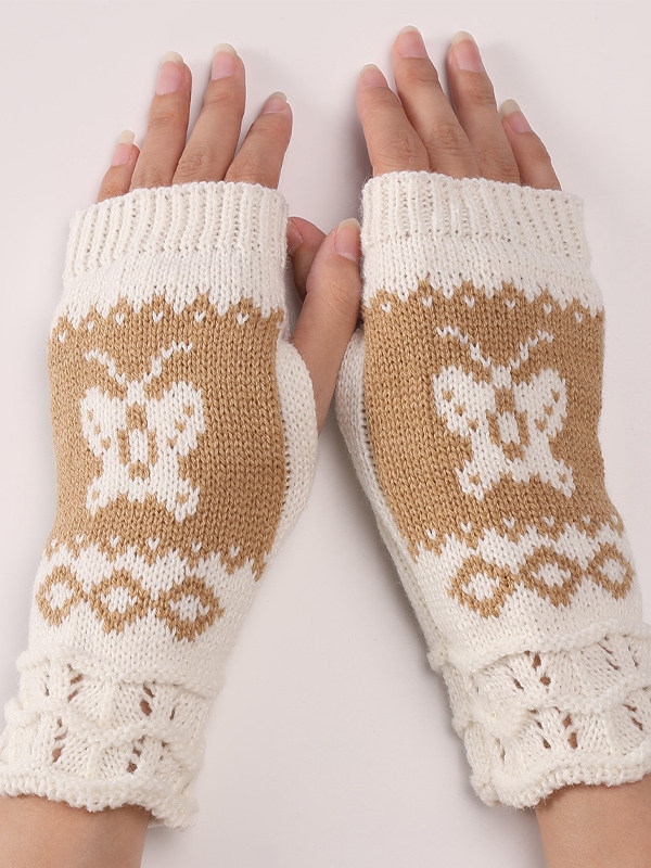 Fingerless Thick Warm Fleece Lining Knitted Gloves