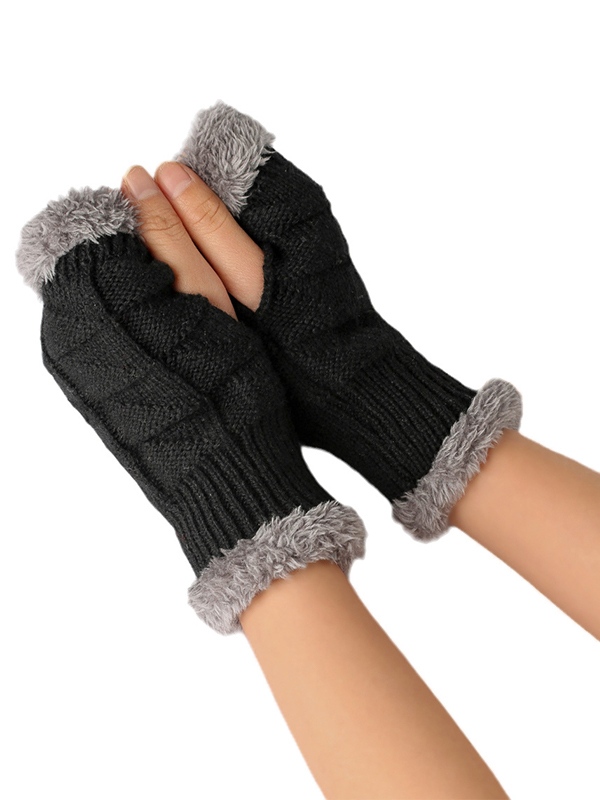 Fingerless Thick Warm Fleece Lining Knitted Gloves