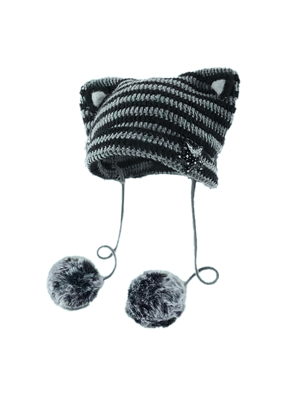 Cat Design Stripe Beanie Hat