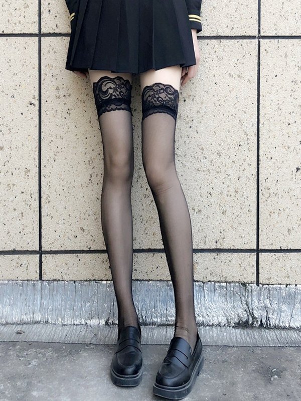 Lace Paneled Mesh Thigh High Socks