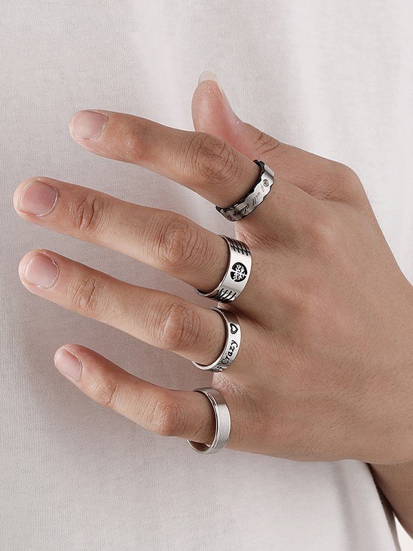 Men’s 4pcs Carved Letter Pattern Ring Set