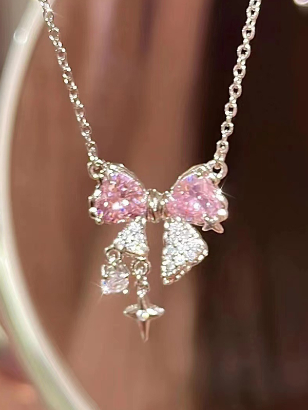 Double Layered Rhinestone Butterfly Pendant Necklace