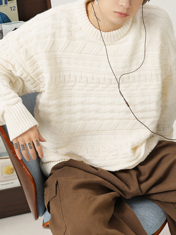 Retro Cable Textured Crew Neck Sweater