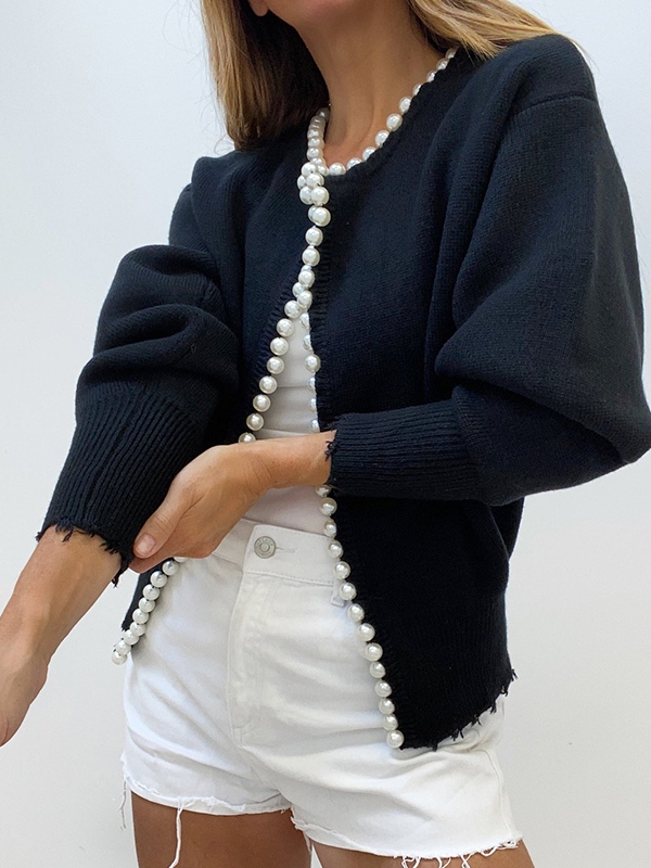 Vintage Pearl Trim Knit Cardigan