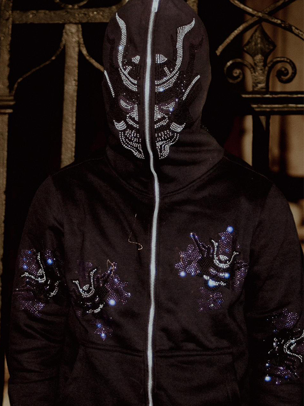 Men’s Rhinestone Print Oversized Hoodie