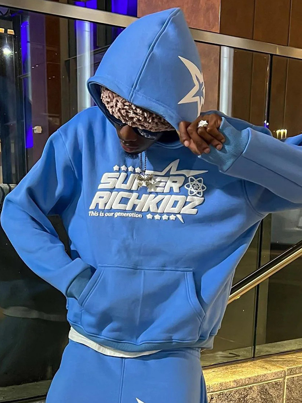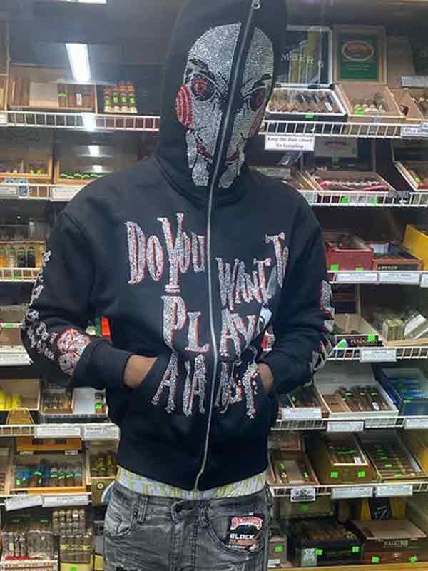 Men’s Hip Pop Rhinestone Print Oversized Hoodie