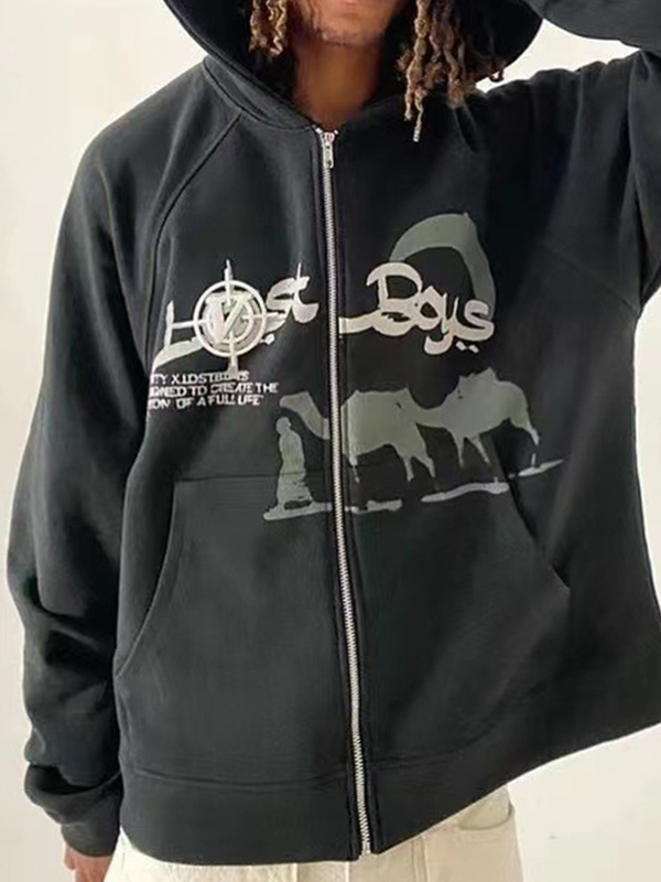 Men’s Sleeve Star Print Zip Up Oversized Hoodie