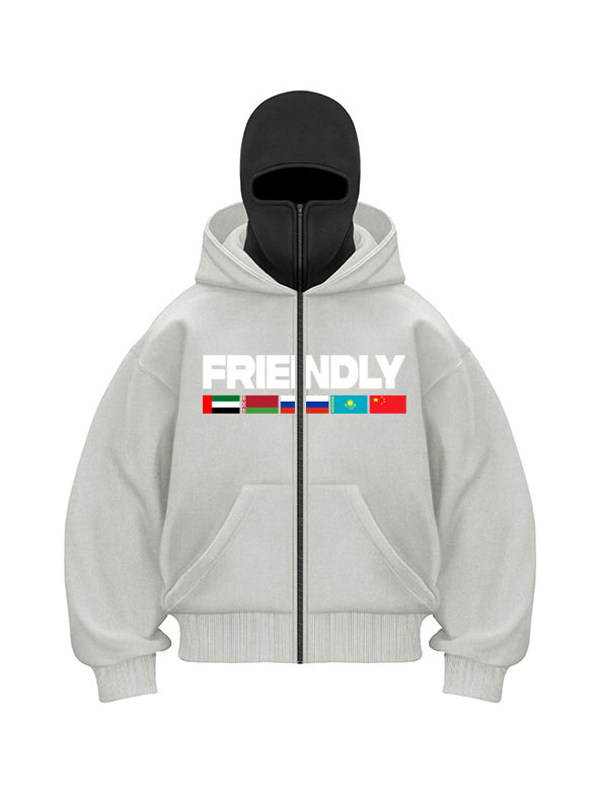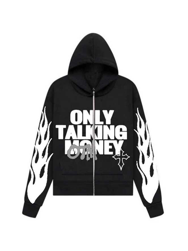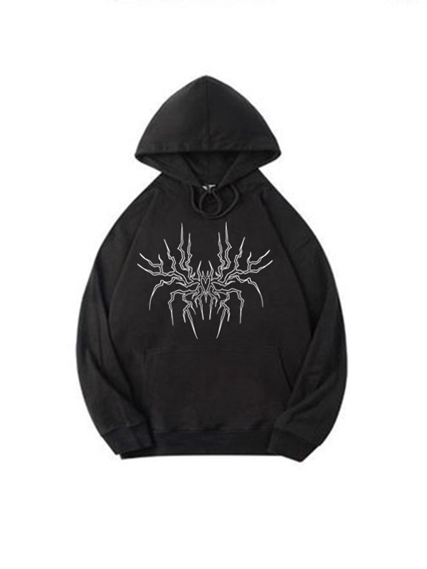 Men’s Demon Print Drawstring Zip Up Oversized Hoodie