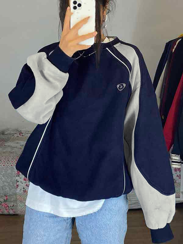 Vintage Contrast Color Patchwork Sweatshirt