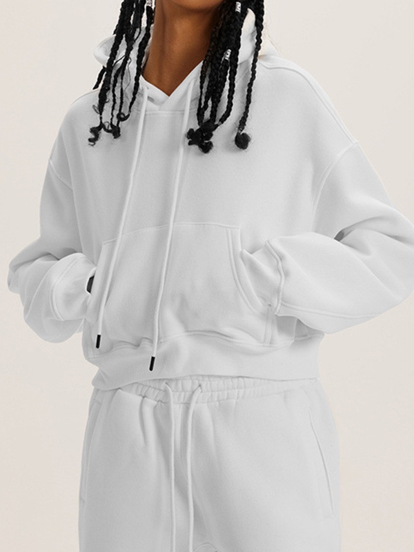 Solid Color Kangaroo Pocket Short Oversized Hoodie