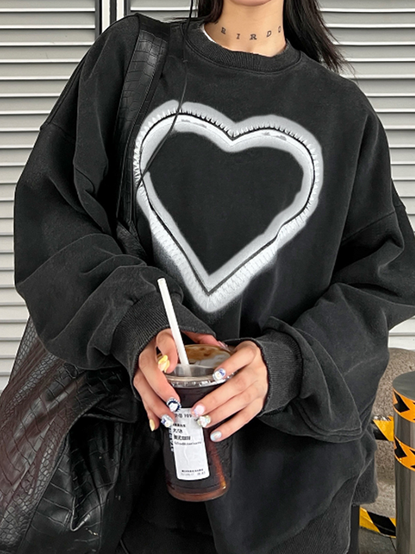 Distressed Heart Print Crew Neck Sweatshirt