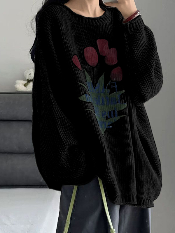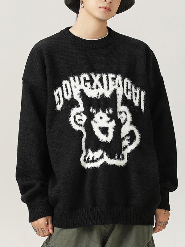 Cartoon Hand-Painted Imitation Mink Round Neck Sweater
