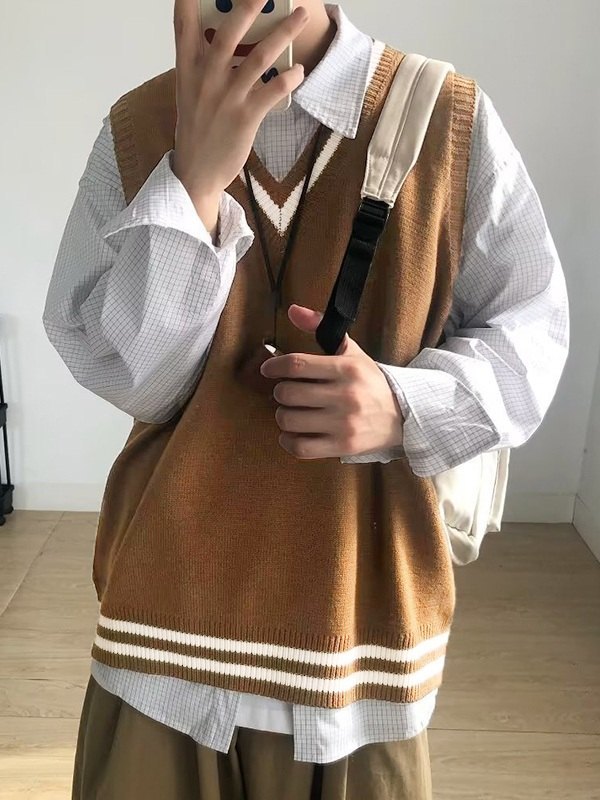 Men’s Irregular Contrast Color Splice Frayed Design Sweater