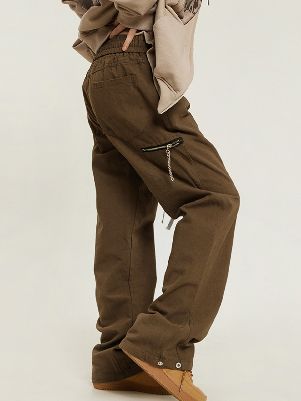 Men’s Vintage Brown Big Pocket Bound Feet Cargo Pants
