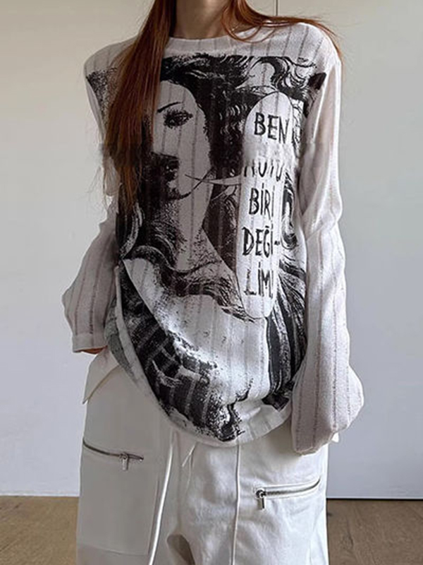 Cutout Portrait Graffiti Print Long Sleeve Knit