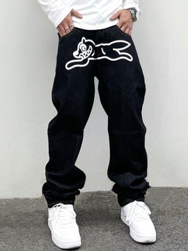 Men’s Flying Dog Print Straight Leg Jeans