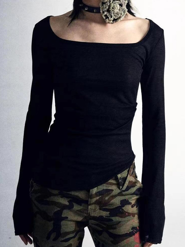 Reversible Print Square Neck Slim Long Sleeve Knit
