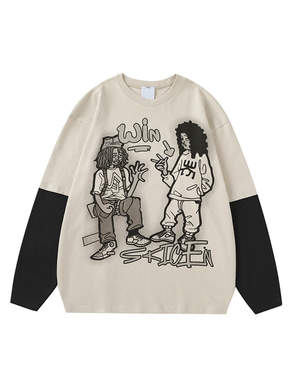 Men’s Vintage Print Patchwork Design Long Sleeve Tee