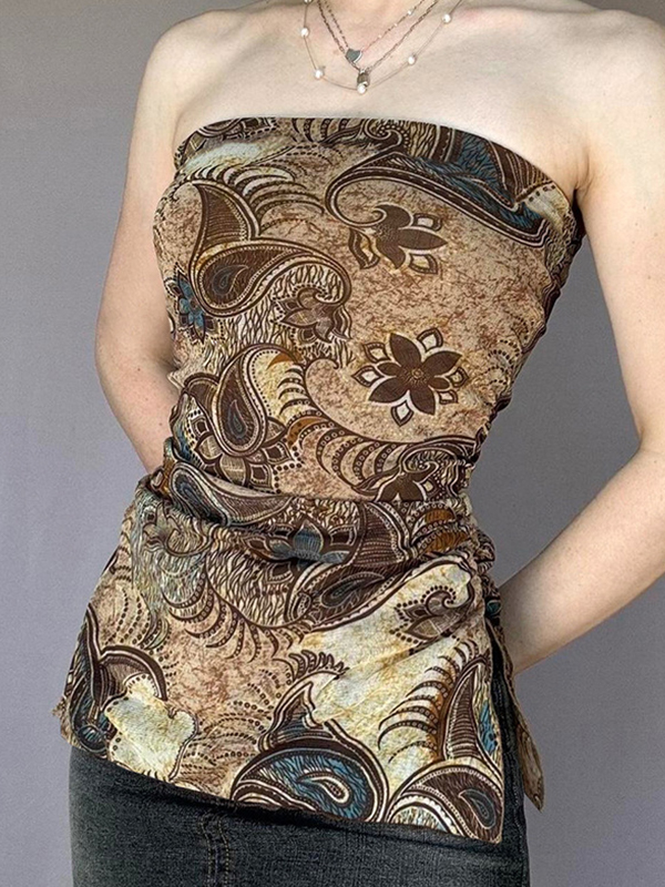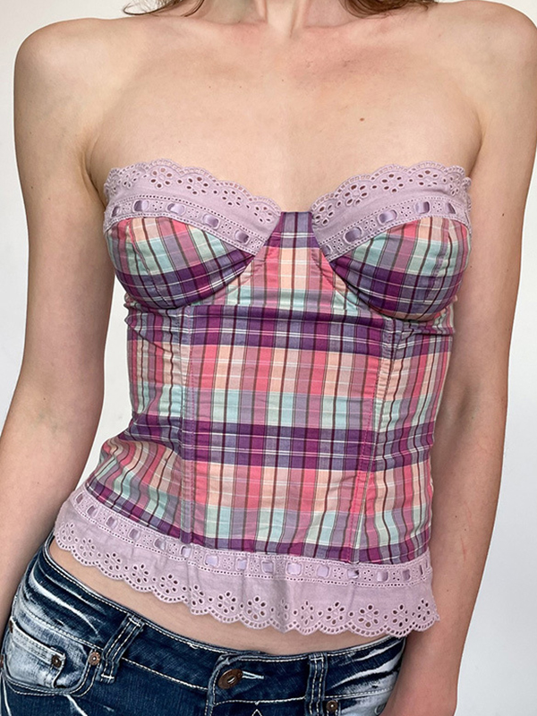 Vintage Denim Irregular Hem Corset Bandeau Top