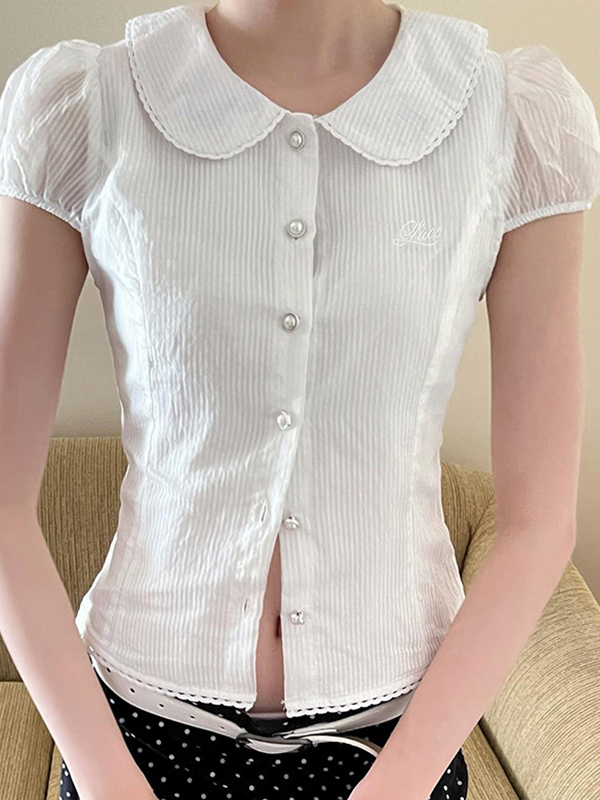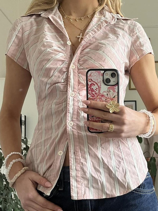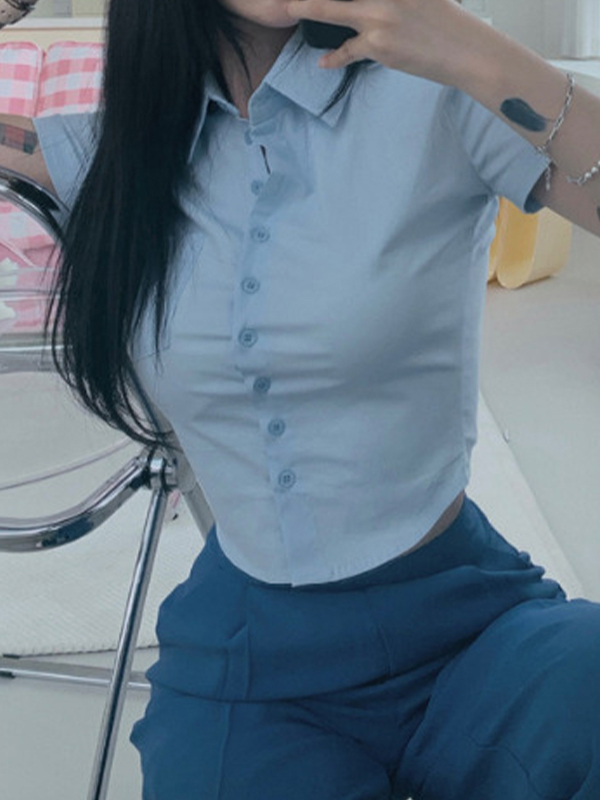 Solid Color Slim Fit Pleated Casual Short Sleeves Shirts
