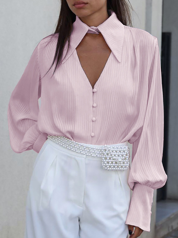Pinstripe V Neck Breasted Long Sleeve Blouse
