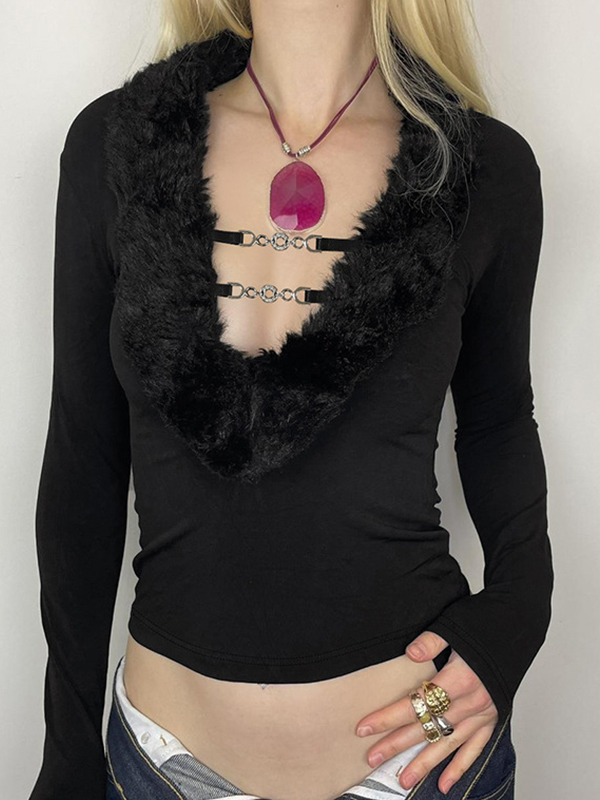 Cutout Contrast Color Splice Buckle Strap Crochet Top