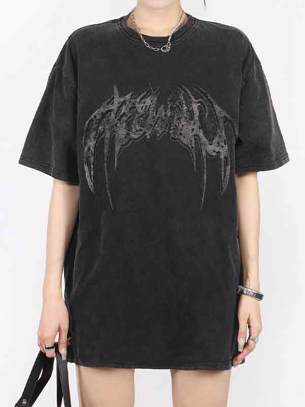 Wing Print Oversized Short Sleeve Tee