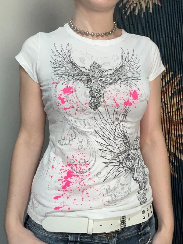 Gothic Print Splash Ink Design Short Sleeve Tee