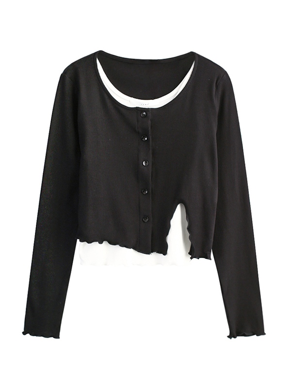 Solid Fungus Slit Hem Two Piece Long Sleeve Knit