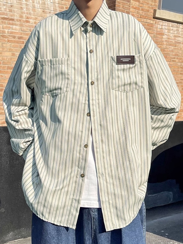 Men’s Stripe Label Embellished Long Sleeve Blouse