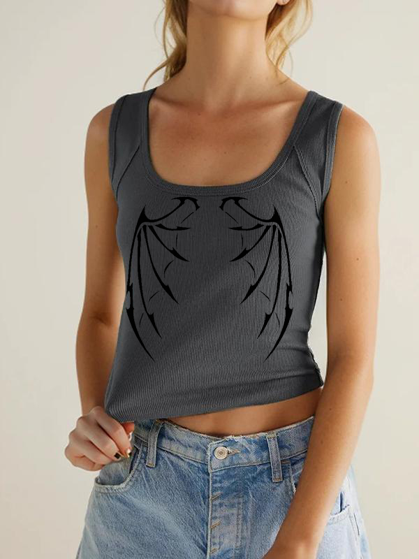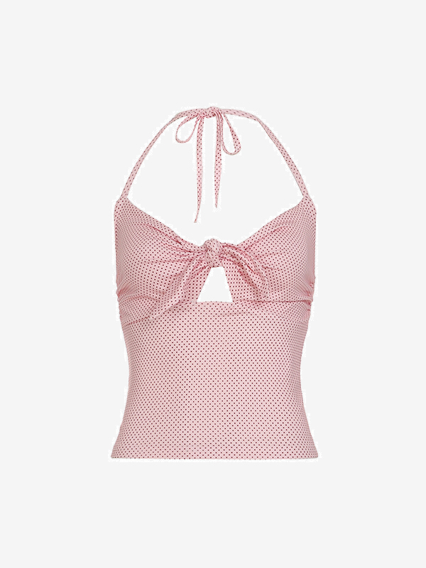Cutout Metal Ring Slit Backless Knit Tank Top