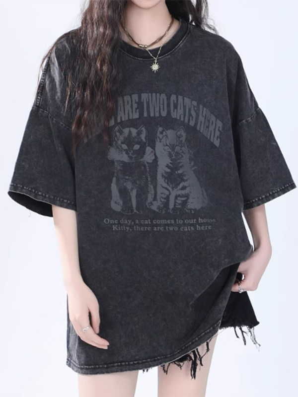 Men’S Dark Style Print Washed Oversized Short Sleeve Tee