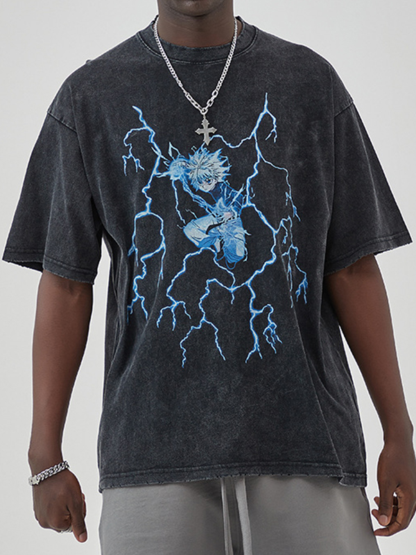 Men’s Lightning Print Oversized Short Sleeve Tee