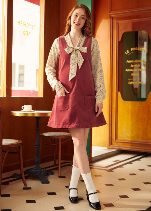 Retro Radiance Cordkleid mit V-Ausschnitt