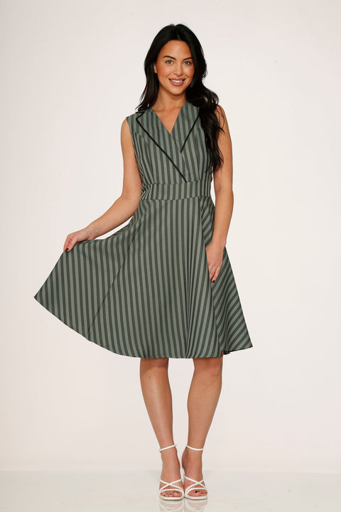 Olivgrünes, gestreiftes Swingkleid