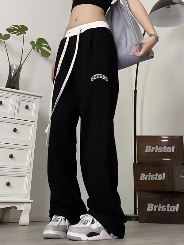 Hip Pop Contrast Letter Print Drawstring Shorts
