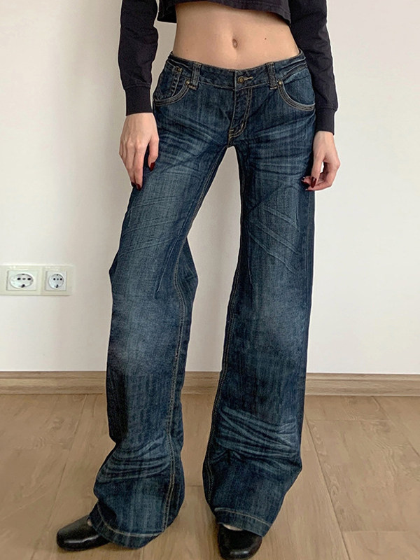Vintage Pleated Washed Loose Flare Jeans