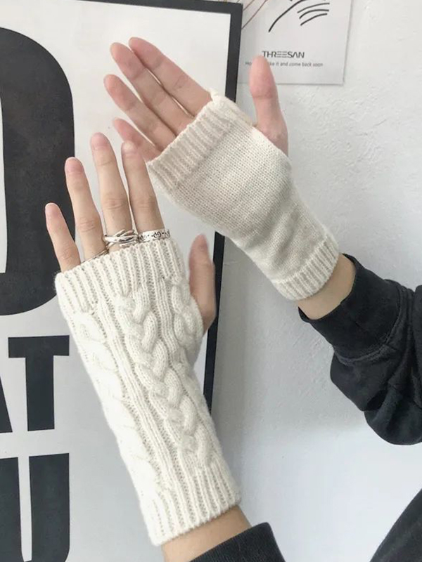 Thumbhole Cable Knit Hand Warmer Gloves