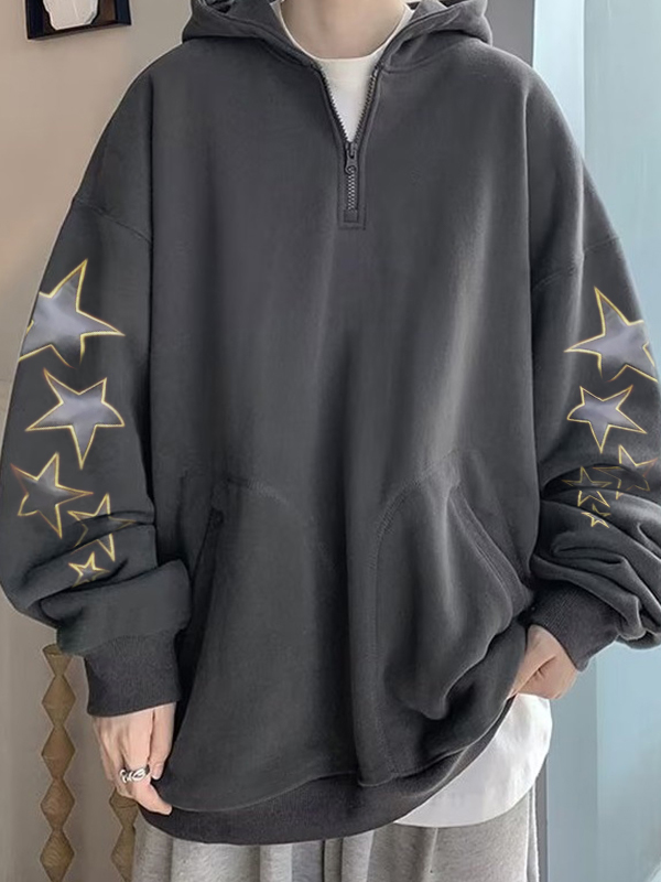 Men’s Sleeve Star Print Zip Up Oversized Hoodie