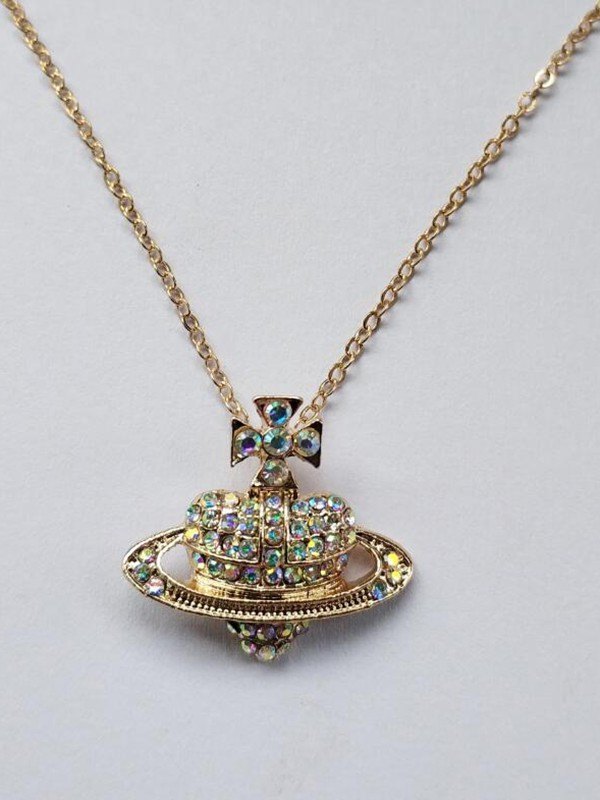 Rhinestone Heart Planet Charm Necklace