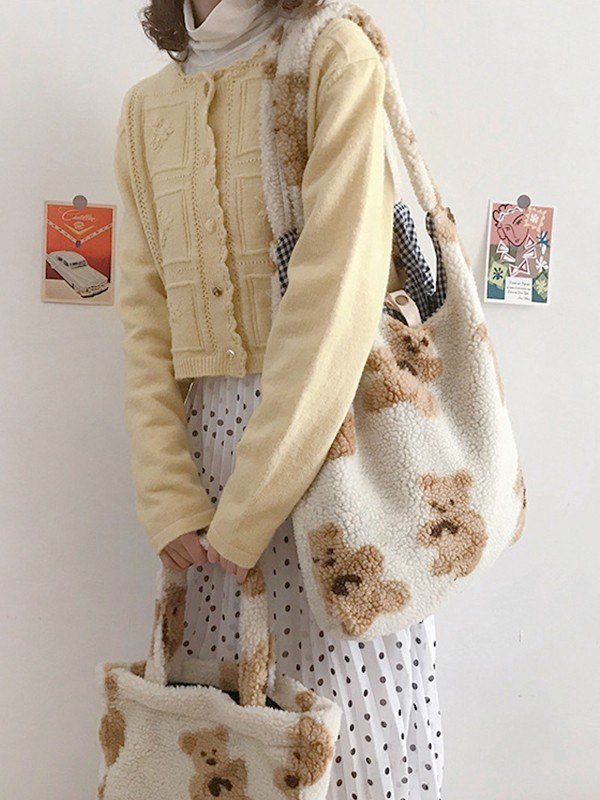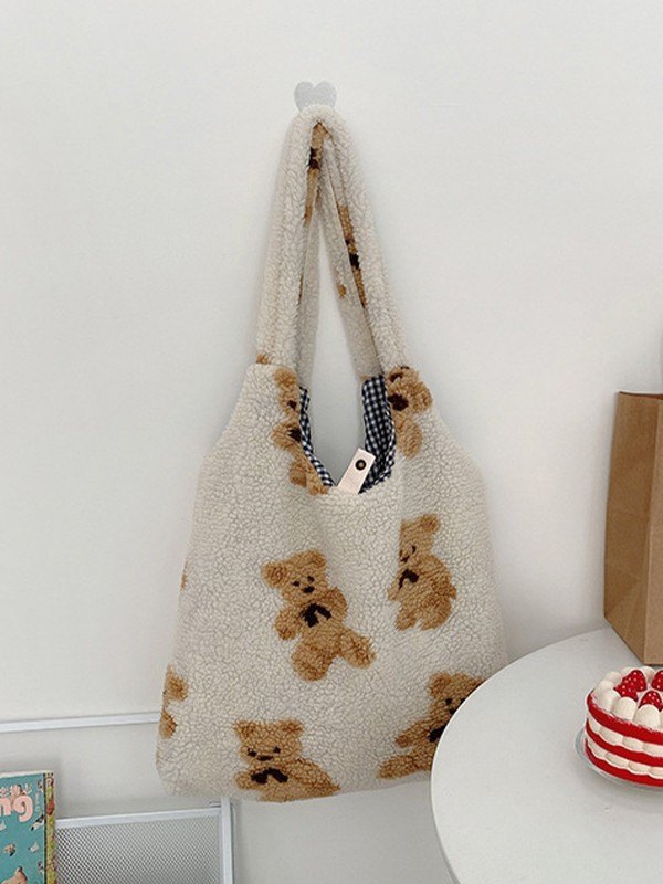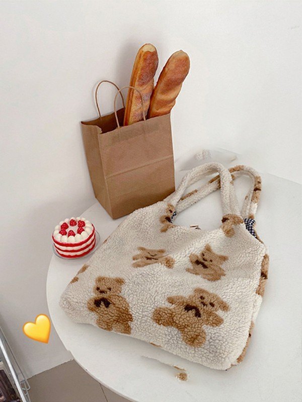 Be the first to review “Bear Pattern Fleece Shoulder Bag”