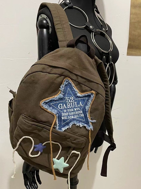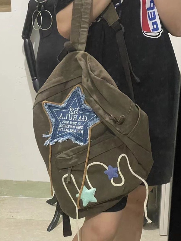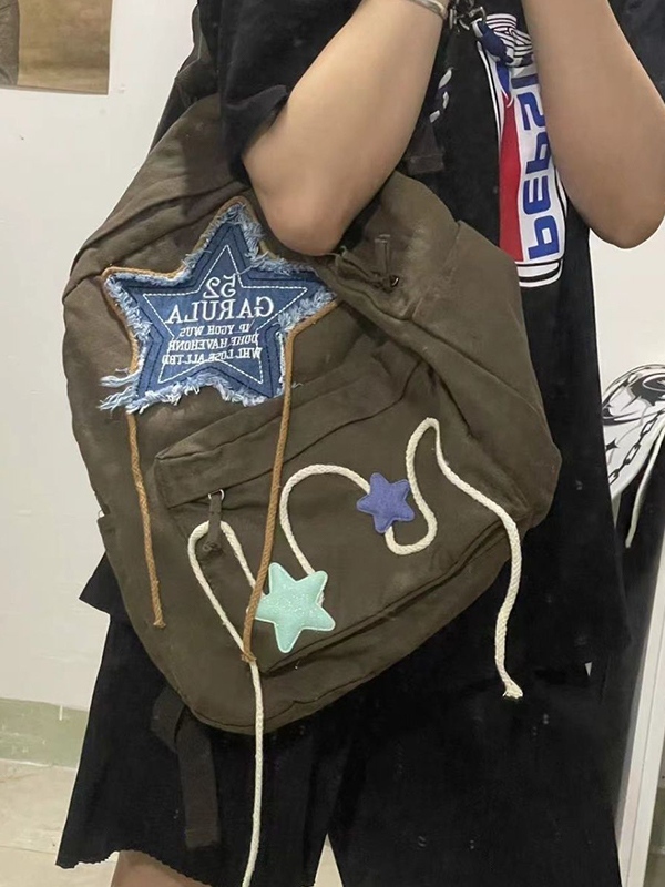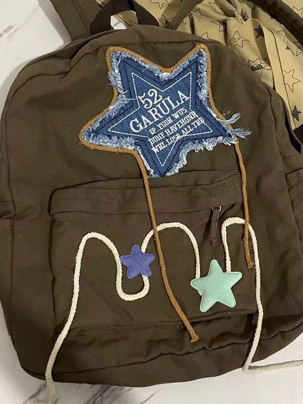 Details: With denim star embroidery print decor and casual thin string as embellishment.