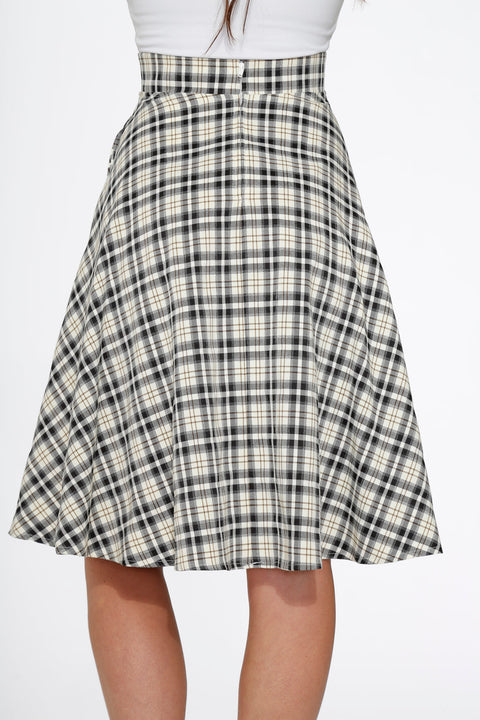 Klasika se setkává s hravostí v kostkované swingové sukni Orchid Bloom v šedobílé barvě. Díky jemným neutrálním tónům a vzdušné rozšířené siluetě dodá tato kostkovaná sukně vintage kouzlo každému outfitu. Je vyrobena z pohodlné směsi bavlny s nádechem streču, takže si můžete celý den užít v ležérním stylu.