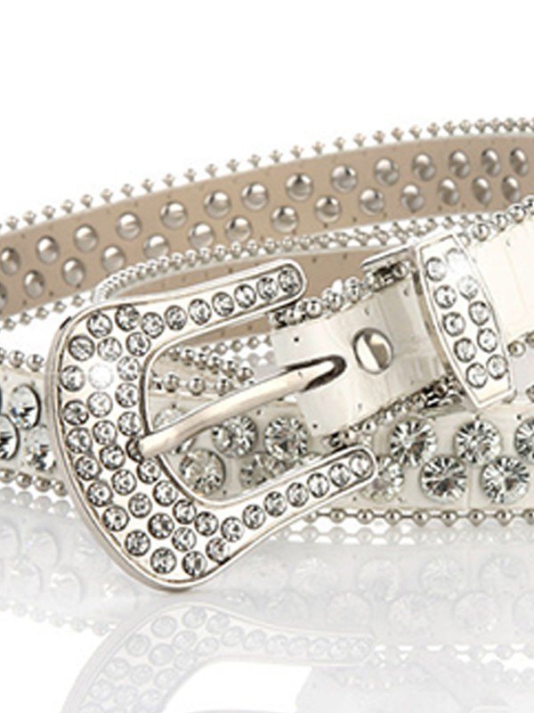 The belt looks stylish with its double rhinestones and solid color, perfect for parties and casual outings. However, the PU leather buckle feels quite stiff and may be uncomfortable for daily wear.