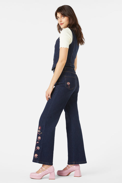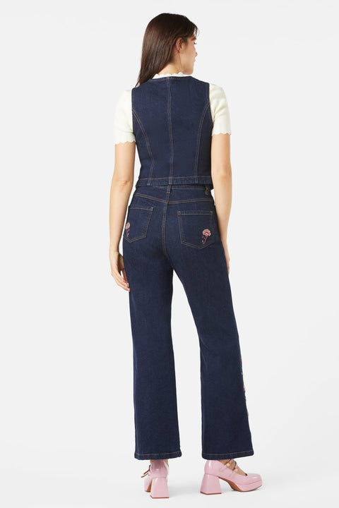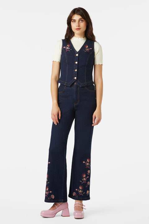 Dodejte svému šatníku nádech svobodomyslnosti s vestou s výšivkou Boho Paisley. Tato tmavá džínová vrstva se vyznačuje propracovanou výšivkou s paisley vzorem, která odkazuje na bohémský styl 70. let – je perfektní samostatně nebo v kombinaci s odpovídajícími vyšívanými džínami pro plně vintage vzhled.