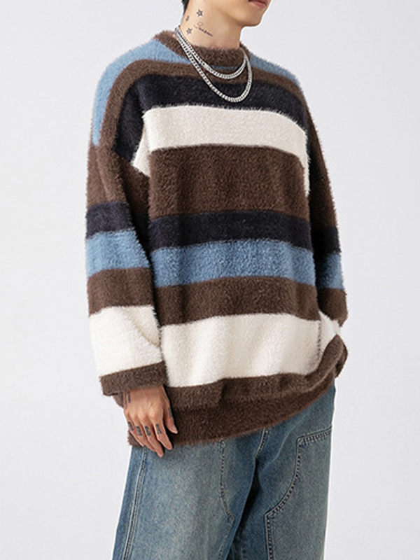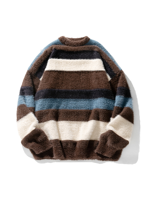 Be the first to review “Faux Mink Contrast Striped Crew Neck Sweater”