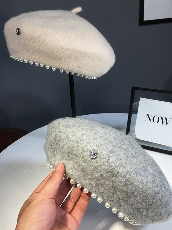 Be the first to review “Faux Pearl Embellished Wool Blend Beret Hat”