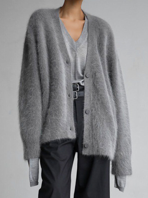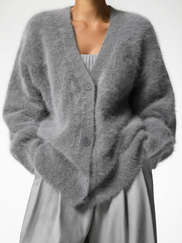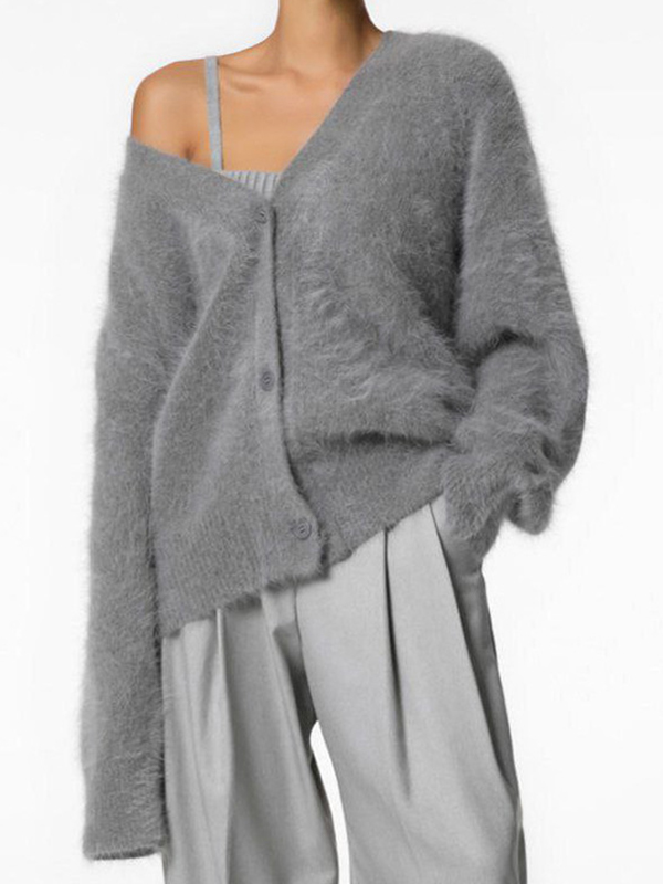 Be the first to review “Fuzzy V Neck Loose Cardigan Sweater”
